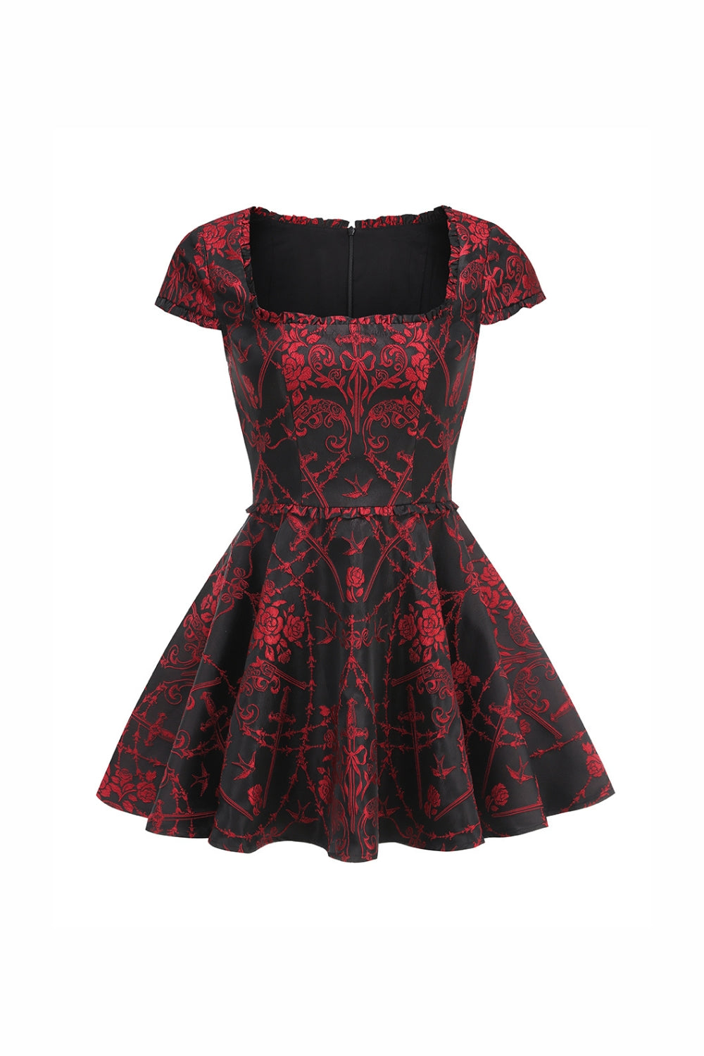 This square neck jacquard mini dress in black and red combines structured elegance with intricate fabric detail. The jacquard weave adds texture and depth, while the square neckline offers a modern, flattering silhouette. Its mini length enhances a confident, stylish look suitable for both day and evening occasions. Crafted to balance sophistication and boldness, this dress is an expert choice for those seeking refined yet striking wardrobe pieces.
