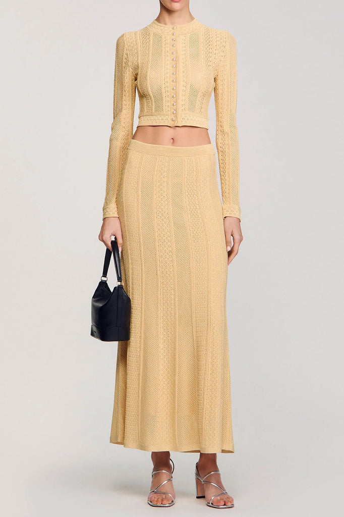 lyuba Two Tone Cropped Sleeveless Cardigan & Knit Skirt