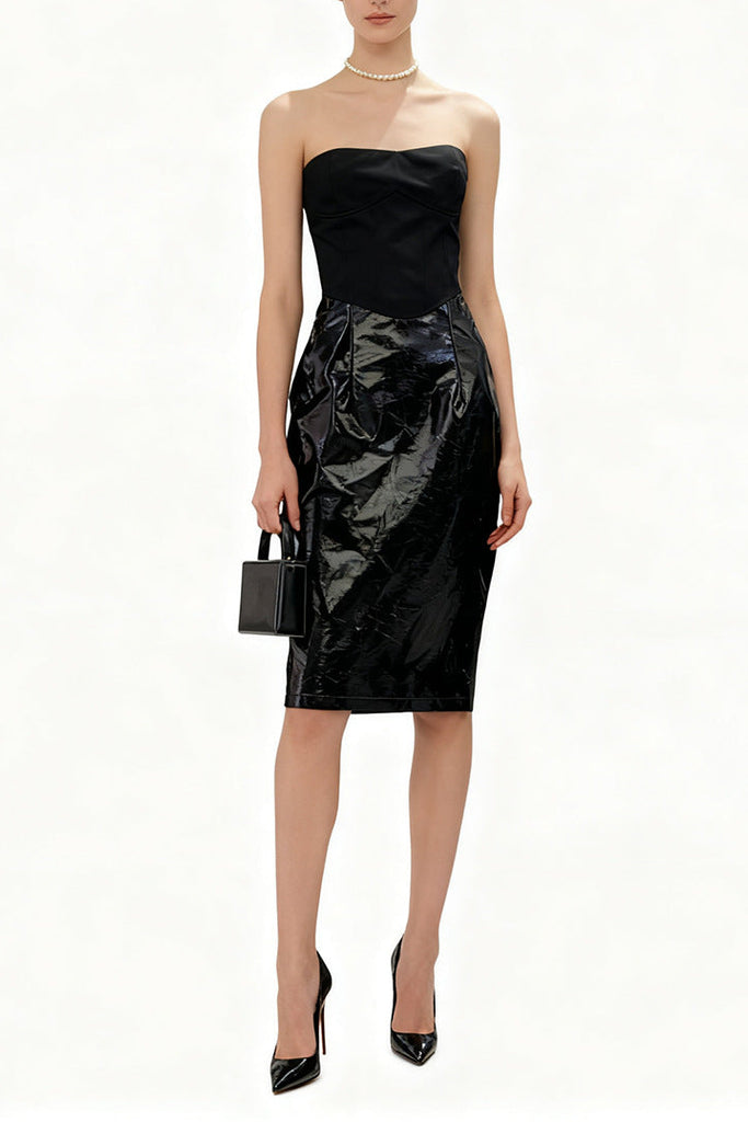 PEARL STRAP CUTOUT SHINY TEXTURE ONE PIECE SWIMSUIT AND SKIRT