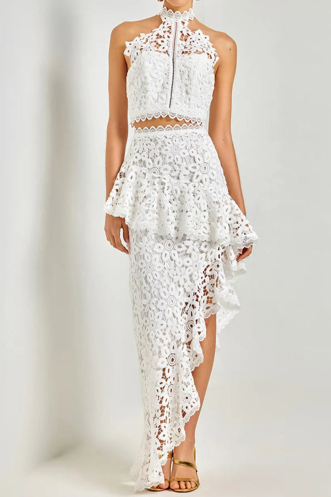 Irregular Petal Lace Bodycon Mini Skirt Set In Beige