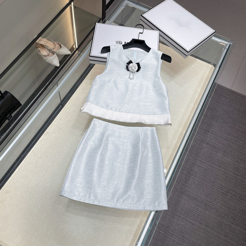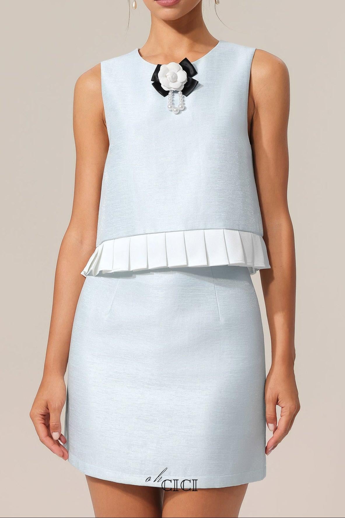 The Nicola Flowers Sleeveless Top Skirt Two-Piece Set in mint combines contemporary elegance with versatile styling. This coordinated ensemble features a sleeveless top paired with a complementary skirt, both rendered in a sophisticated mint hue that transitions seamlessly from day to evening wear. The floral design elements add refined visual interest while maintaining a polished aesthetic. Crafted for comfort and movement, this two-piece set offers the flexibility to style pieces individually or wear together for a cohesive look. Perfect for those seeking a modern, put-together ensemble that balances simplicity with subtle botanical charm.