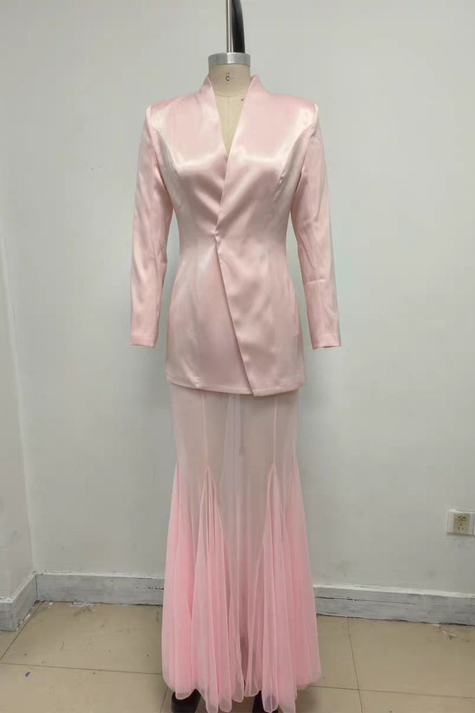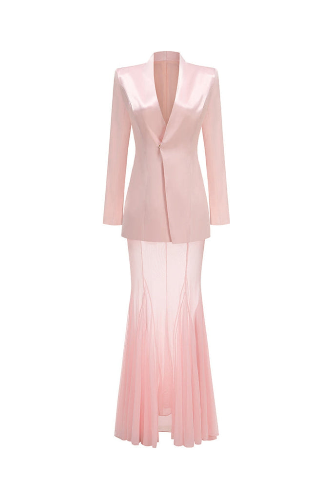 Make a statement of modern femininity with the Ilhamp Pink Blazer & Mesh Skirt Set. This coordinated ensemble pairs a sharp, tailored blazer in a vibrant pink hue with a delicate mesh skirt, creating a look that’s both powerful and playful. Perfect for creative workplaces, events, or evenings out where you want to shine with confident, curated style.