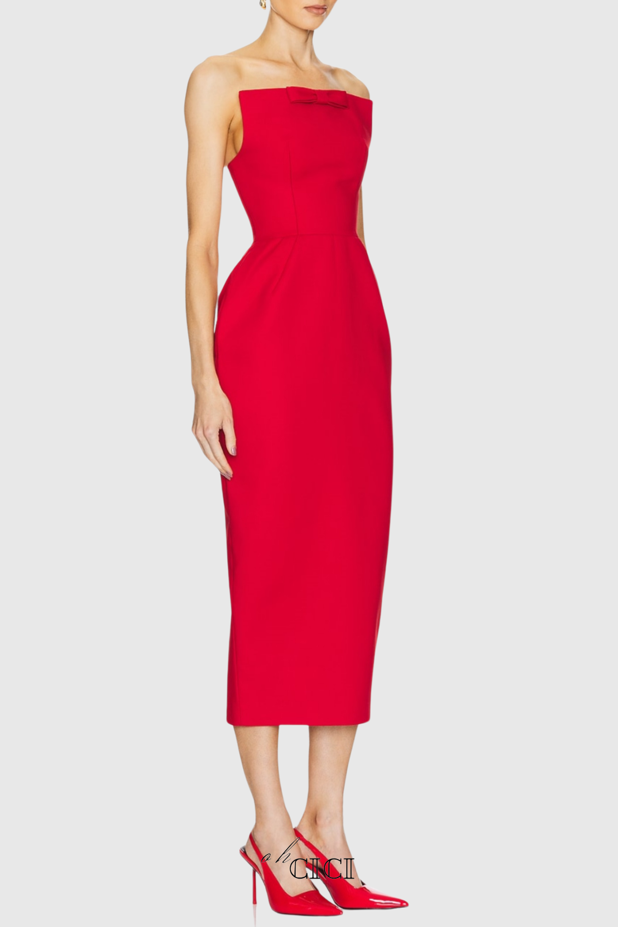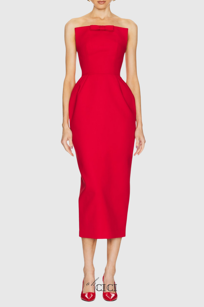 The amanda Bow Strapless Maxi Dress in Red is perfect for any formal occasion. With its elegant strapless design and striking red color, you'll be sure to make a statement. The added bow detail adds a touch of sophistication to this already stunning dress. Feel confident and stylish in this must-have piece.