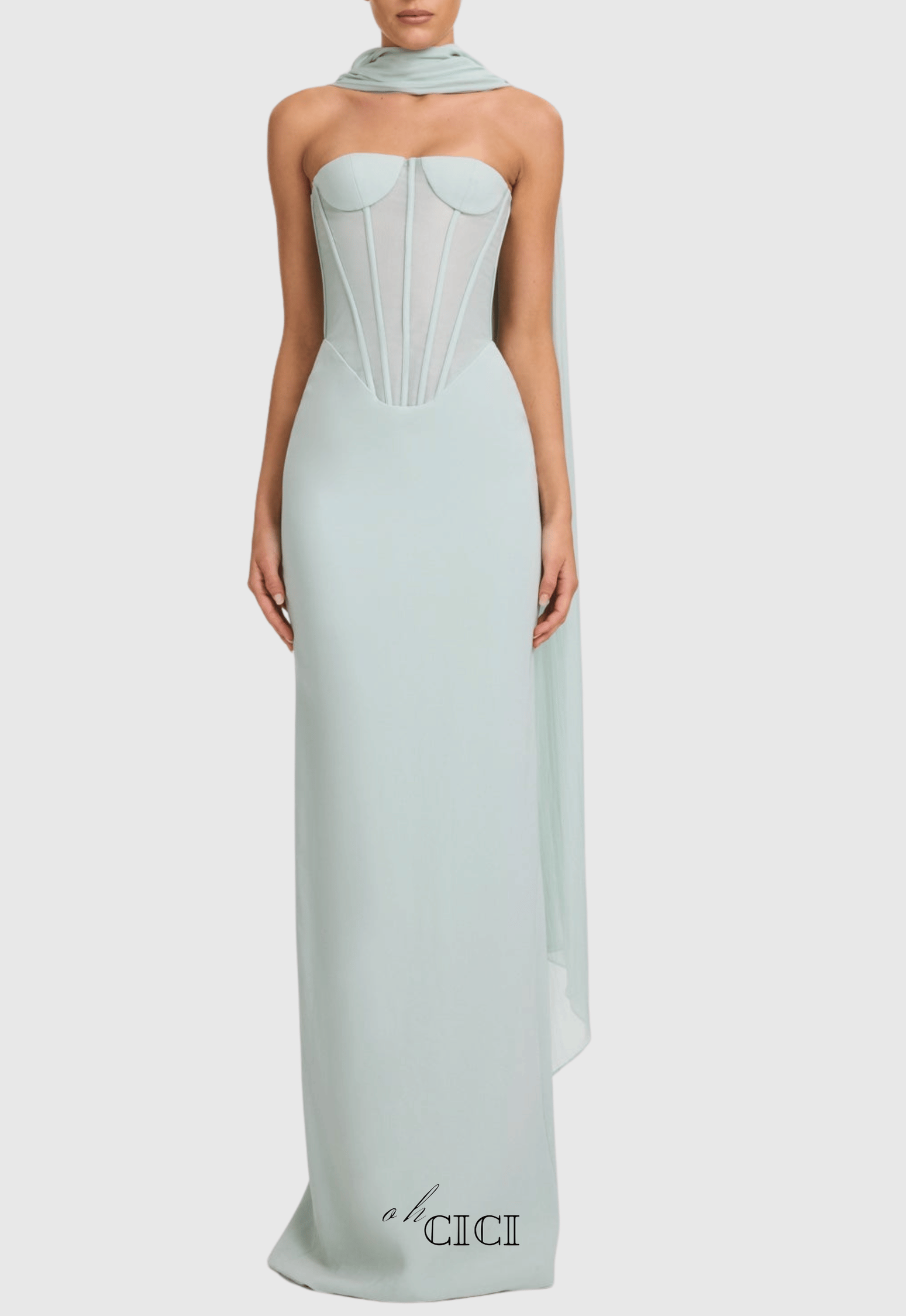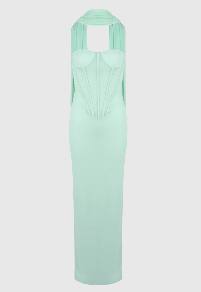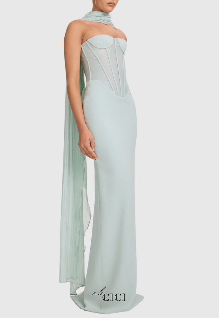 anna Strapless Mesh Scarf Corset Maxi Dress in green – OH CICI