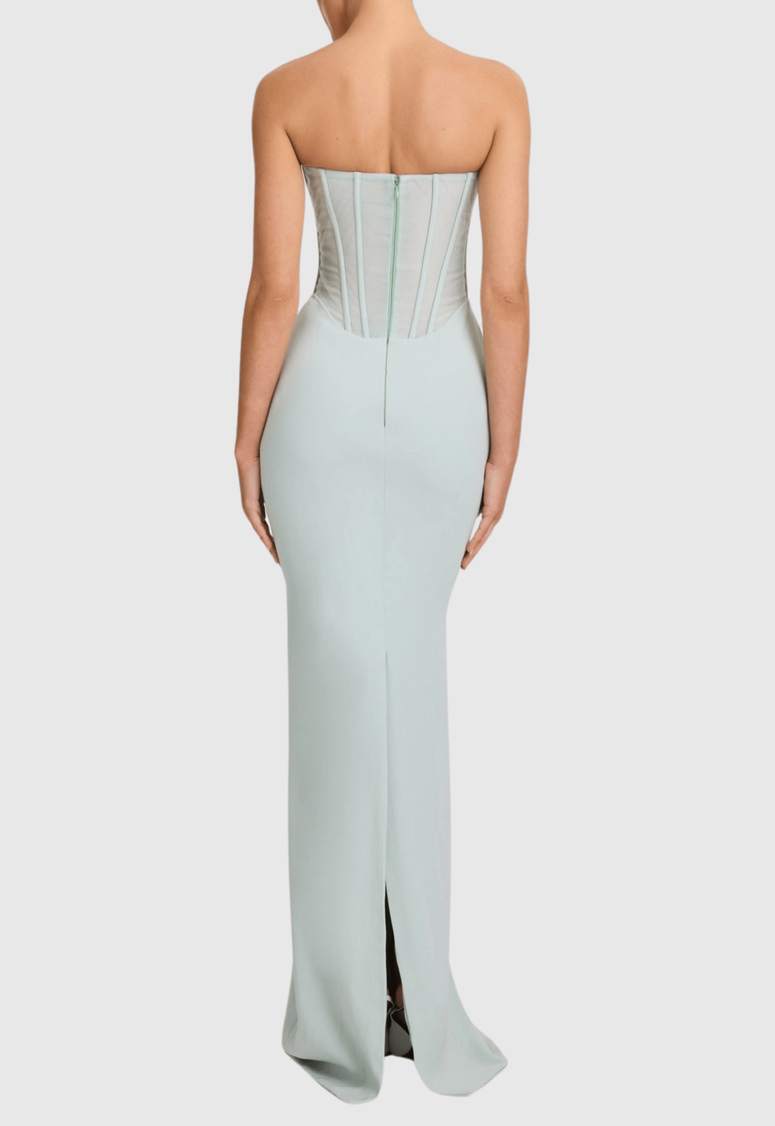 Beautiful and elegant, the anna Strapless Mesh Scarf Corset Maxi Dress in green is a must-have for any special occasion. Made with a unique mesh scarf corset design, this dress flatters your figure and adds a touch of glamour. The strapless neckline and maxi length make it the perfect choice for a stylish and sophisticated look.
