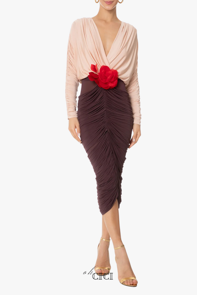 valerie Long Sleeve Bodycon Bandage midi Dress in red