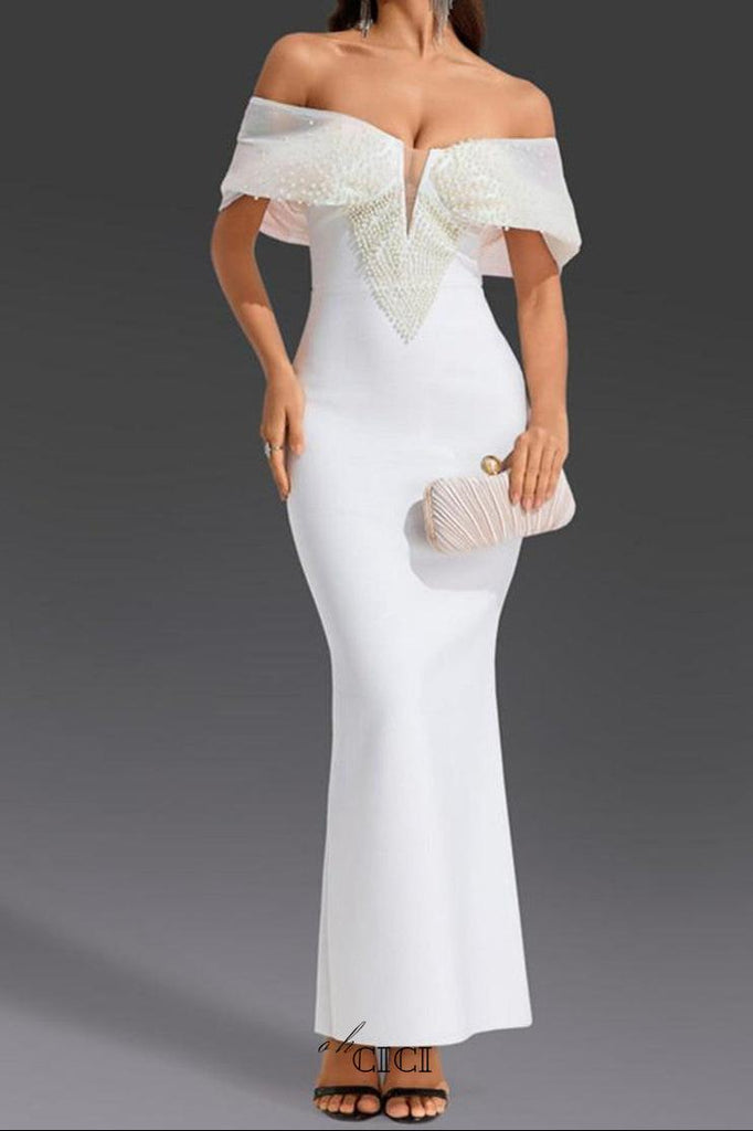 white bodycon midi dress Bandage elastic sling with handmade flower