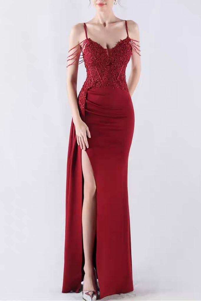 ROBE MAXI SLIM CORSET EN DENTELLE ROUGE