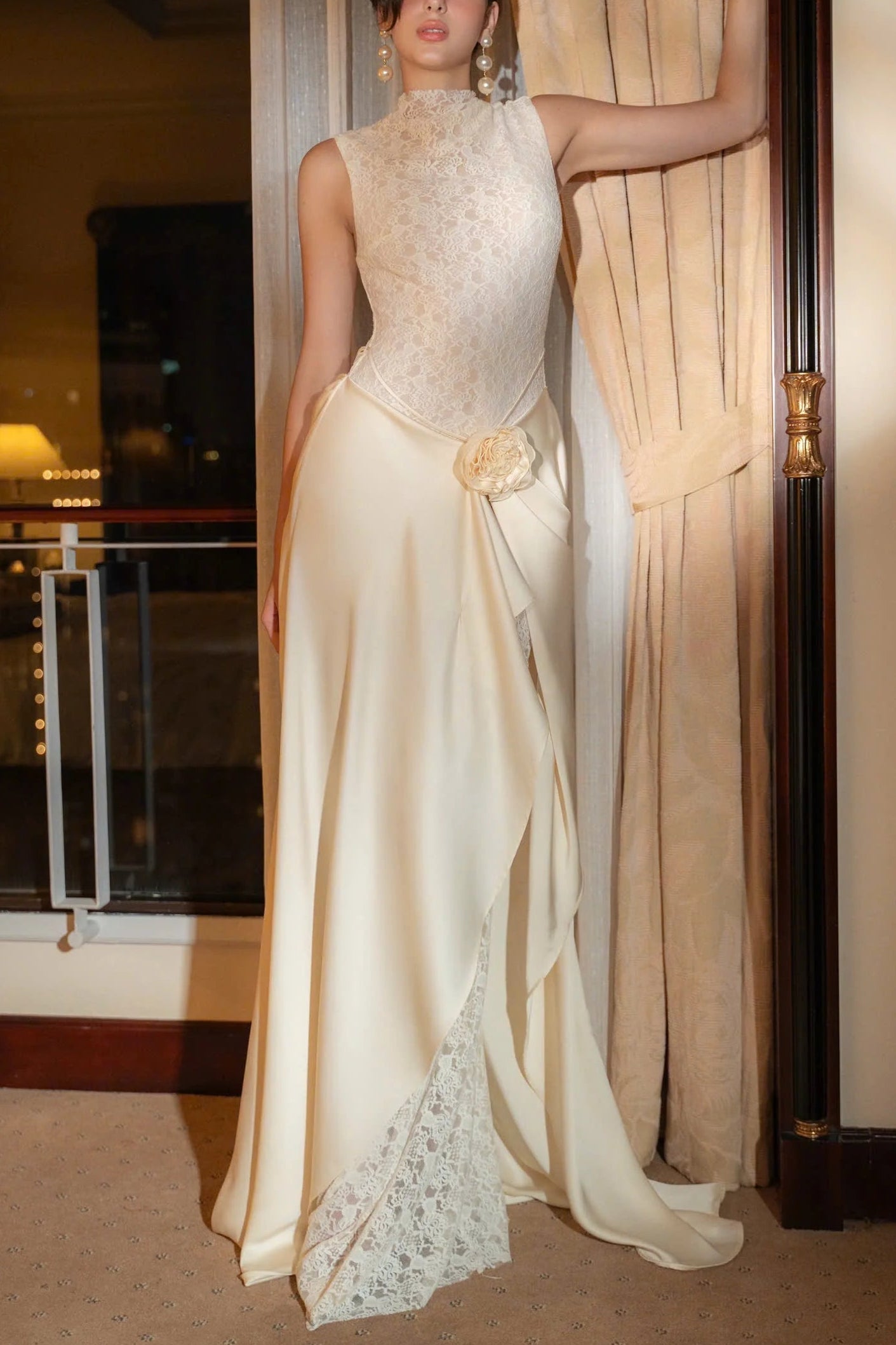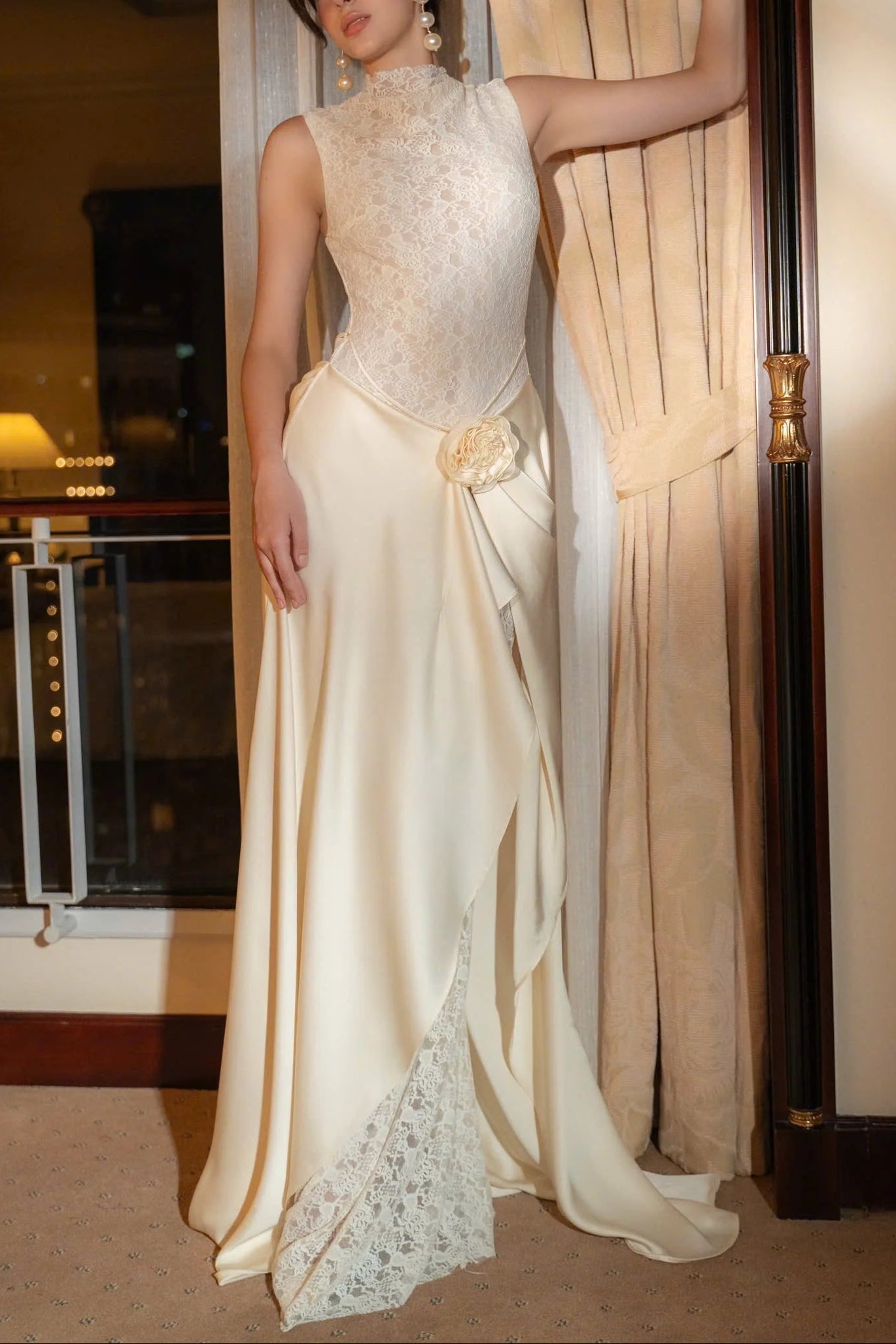 giselle flower embellished sleeveless lace maxi dress in white