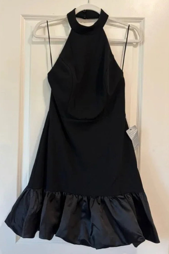 Elevate your wardrobe with this black Bubble Hem Halter Mini Dress, expertly designed to blend playful volume with sleek sophistication. The bubble hem adds a contemporary twist, creating a flattering silhouette that enhances movement and style. Featuring a halter neckline, this dress offers both comfort and an elegant frame, making it ideal for evening events or stylish daytime occasions. Crafted to balance bold design with timeless appeal, it’s a confident choice for those seeking refined, modern fashion.