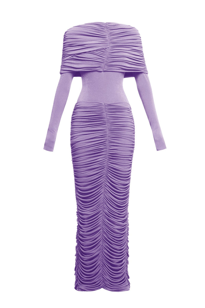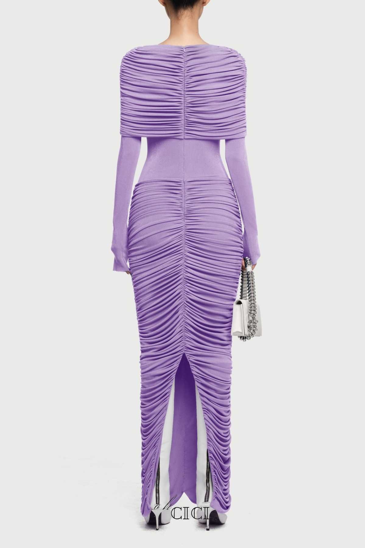 alice purple pleated Form-fitting maxi dress with asymmetrical draped shoulder