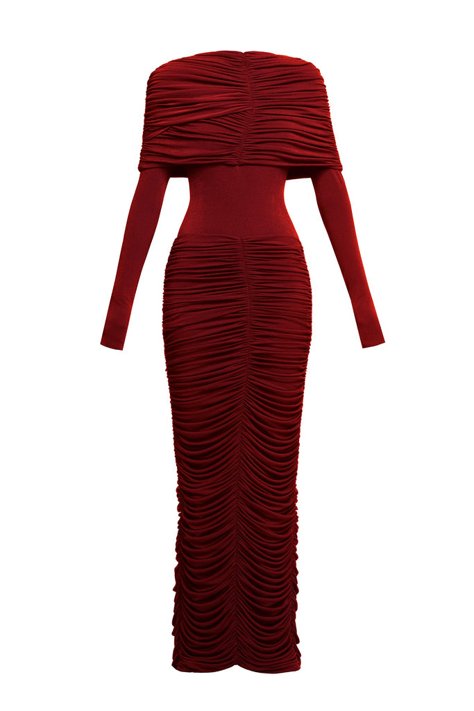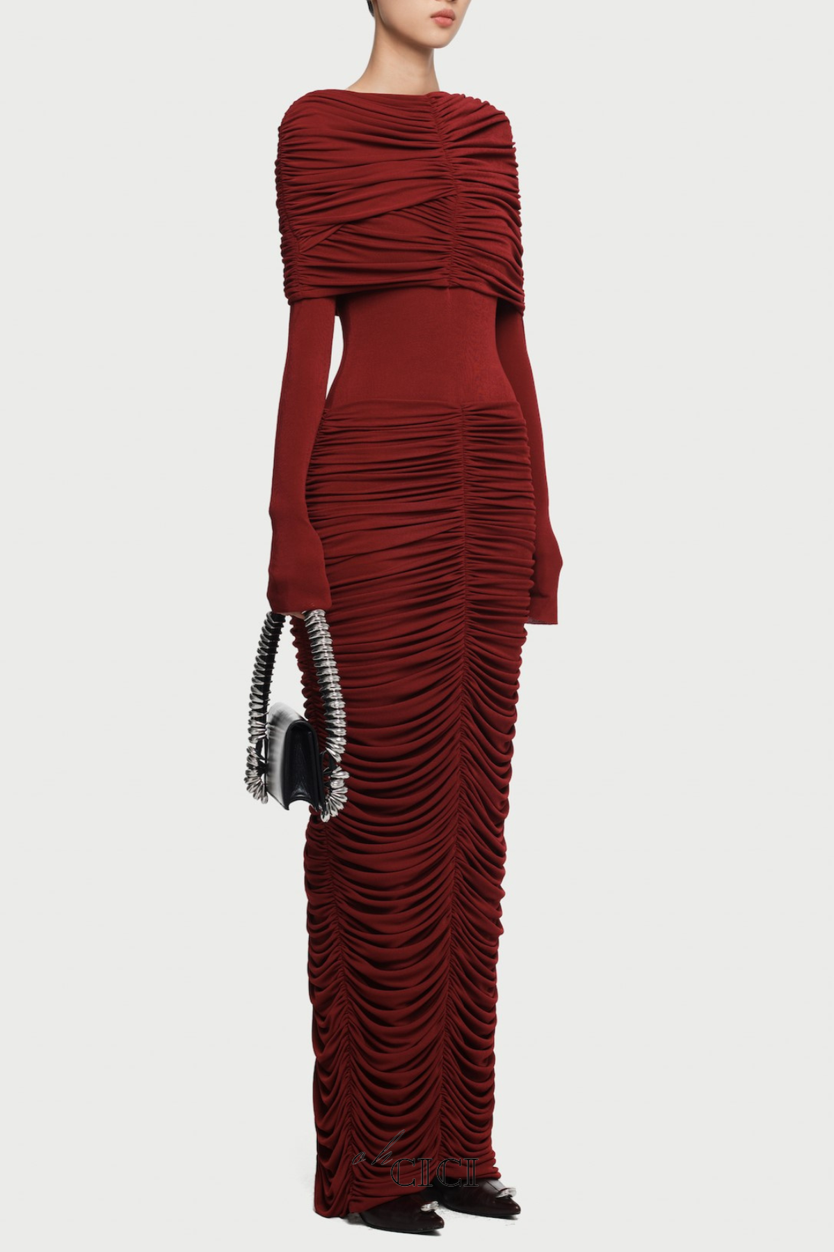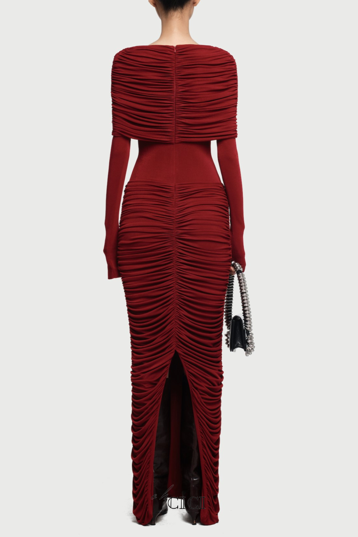 The Alice red pleated maxi dress combines architectural design with refined elegance. Its form-fitting silhouette flatters the body while the asymmetrical draped shoulder creates a sophisticated focal point. Pleated detailing adds dimension and movement throughout, while the maxi length offers timeless versatility. Perfect for evening events, formal occasions, or elevated everyday wear, this statement piece demonstrates expert tailoring and modern design sensibility.