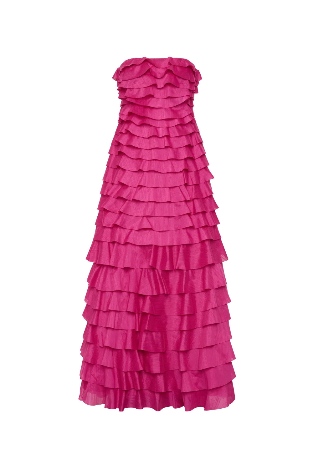 Elevate your wardrobe with the Cathy Pleated Layer Strapless Maxi Dress in Rose Red. This expertly designed dress features delicate pleated layers that add texture and movement, while the strapless silhouette offers a sleek, elegant look. The vibrant rose red hue enhances your presence for any formal occasion or special event. Crafted to combine sophistication with comfort, it flatters the figure effortlessly, making it a timeless addition to your collection.