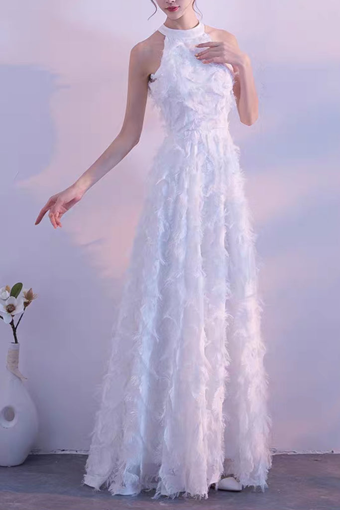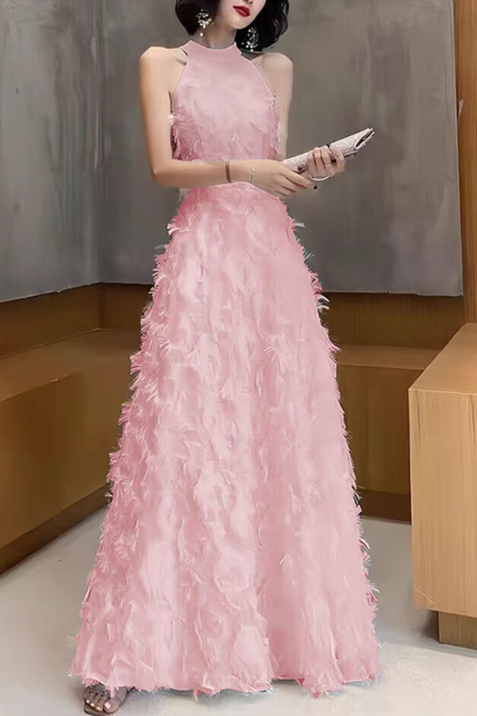 Flaunt your playful side in our Devana Maxi Dress with a halter neckline and feather tassel details. Perfect for any occasion, this dress adds a touch of whimsy and charm to your wardrobe. Stay effortlessly stylish and comfortable all day long!