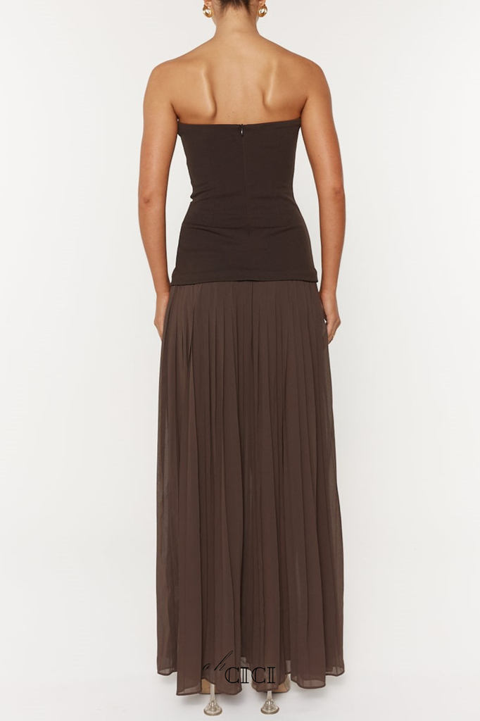 Elevate your style with the marguerite Strapless Pleated Maxi Dress, designed to combine elegance and ease. Featuring delicate pleats that cascade gracefully, this strapless silhouette accentuates your neckline and shoulders with refined charm. Perfect for formal events or elegant evenings, its flowing fabric ensures comfort while maintaining a striking, sophisticated presence. The Keata dress is your go-to choice for timeless glamour.