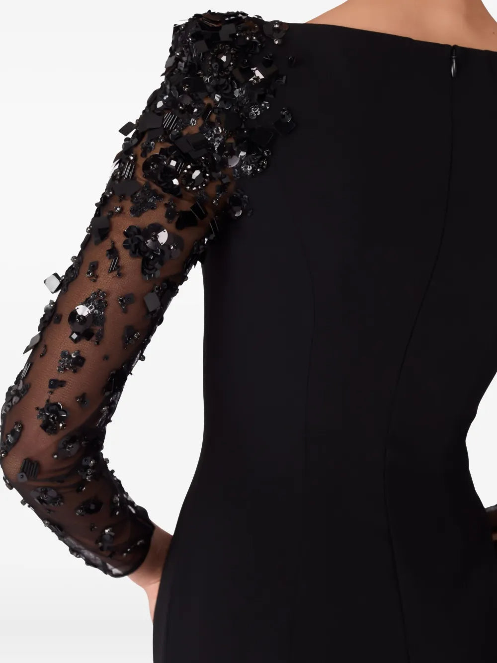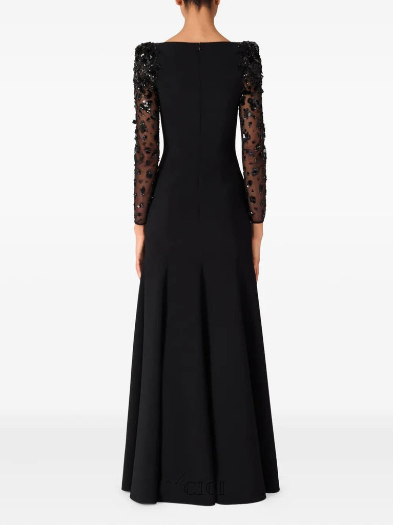 Elevate your evening wardrobe with this sophisticated Martha mesh splicing beading diamond maxi dress in black. Featuring intricate beading details and diamond-patterned mesh panels, this floor-length gown combines timeless elegance with contemporary design. The strategic mesh splicing creates visual interest while maintaining a refined silhouette, making it an ideal choice for formal events, galas, or upscale celebrations. The classic black hue ensures versatility and pairs effortlessly with statement jewelry and evening accessories. Crafted for those who appreciate refined craftsmanship and understated luxury.
