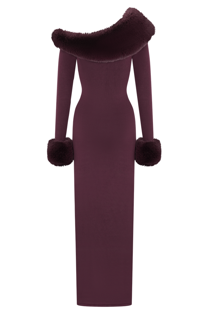 Elevate your evening wardrobe with the rebecca Faux Fur Knit Maxi Dress in rich plum. This sophisticated piece combines luxurious faux fur detailing with a refined knit construction, creating a striking silhouette that transitions seamlessly from special occasions to upscale gatherings. The maxi length offers elegant coverage while the plum hue provides a timeless alternative to traditional neutrals. Crafted for those who appreciate quality craftsmanship and understated luxury, this dress delivers both comfort and commanding presence.