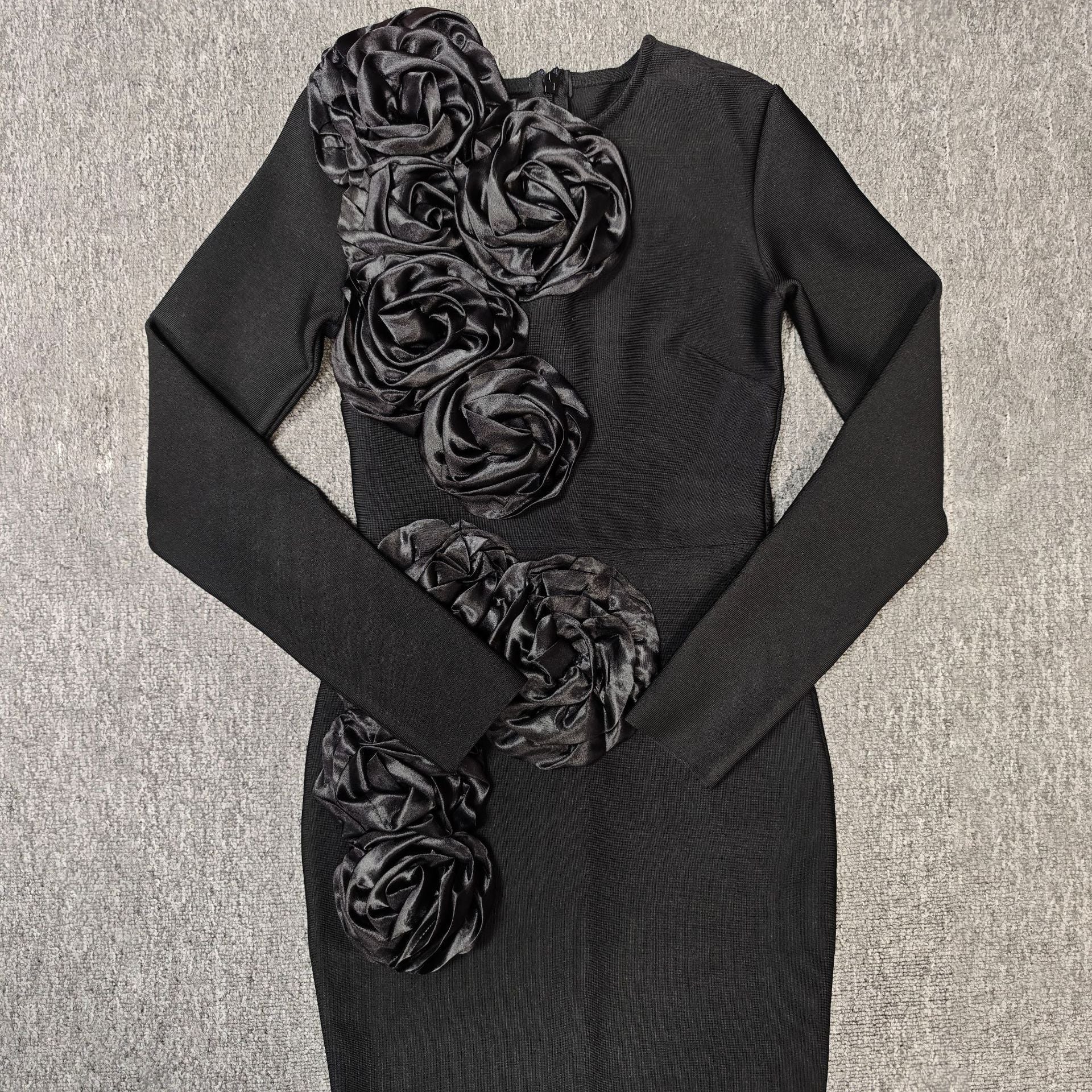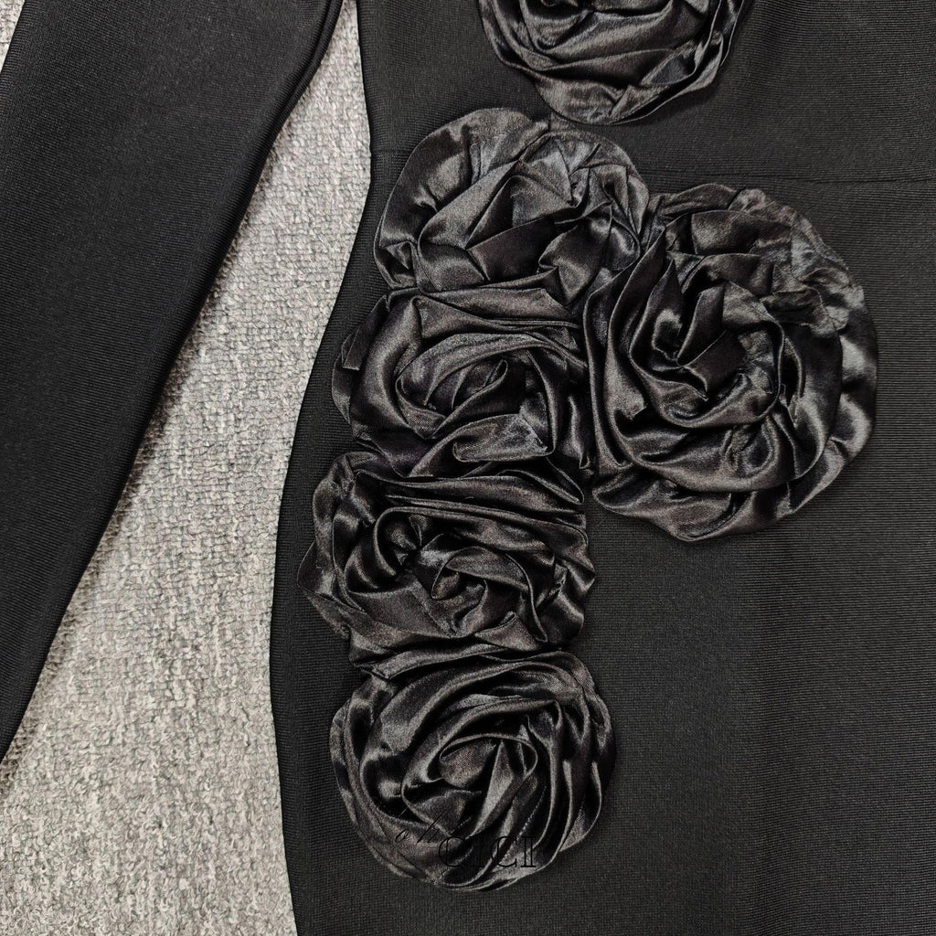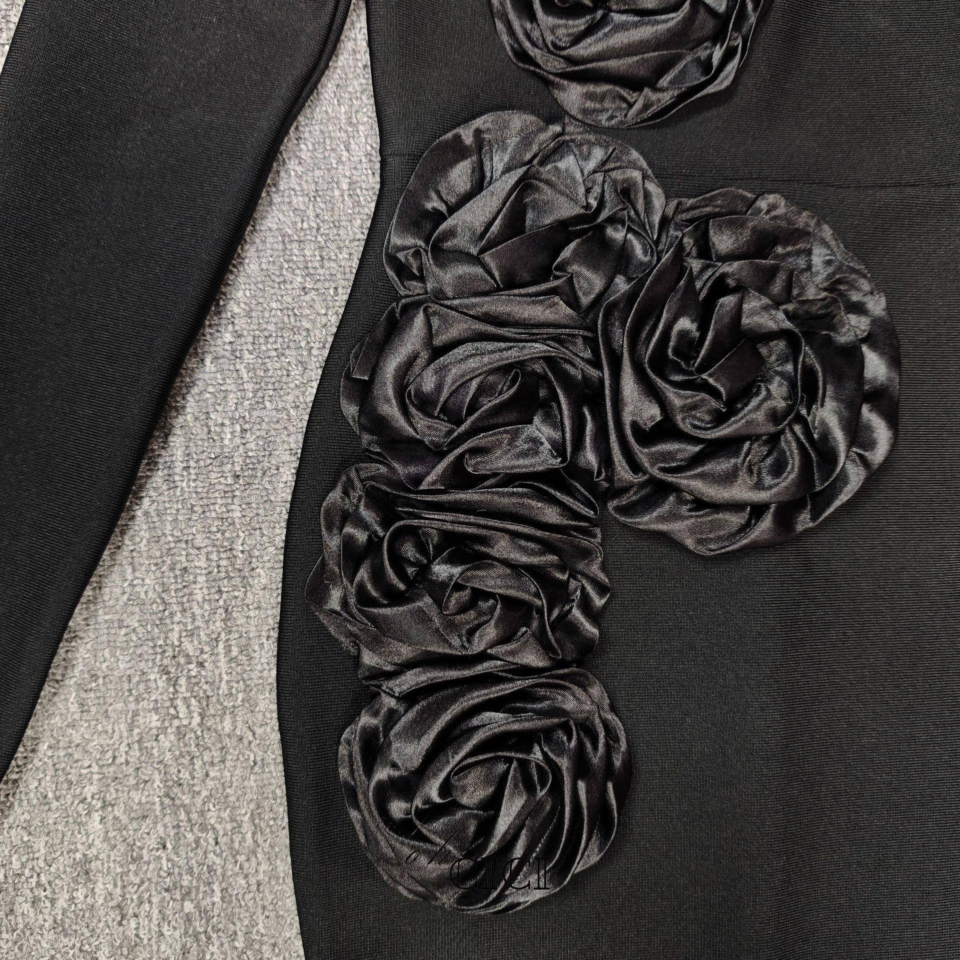 Elevate your evening wardrobe with the Sally 3D Flower Decorative Bandage Maxi Dress in black. This sophisticated piece features dimensional floral embellishments that create striking visual depth against a sleek black silhouette. The signature bandage construction offers a flattering, body-contouring fit, while the maxi length delivers timeless elegance. Perfect for formal events, galas, or upscale occasions where you want to make a refined statement. The intricate 3D florals add artistic flair without compromising the dress's polished aesthetic.