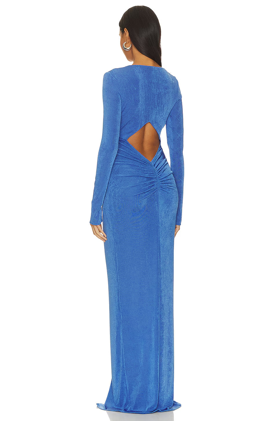 The Virginia Blue Pleated Long Sleeve Maxi Dress combines sophisticated tailoring with contemporary elegance. Crafted in a rich blue hue, this floor-length silhouette features refined pleating throughout for dimensional movement and visual interest. Long sleeves provide polished coverage, while the dramatic high slit adds a modern edge and allows for graceful stride. Perfect for evening events, formal occasions, or elevated everyday wear, this dress transitions seamlessly from day to night. The structured pleating creates a flattering silhouette that drapes beautifully on all body types.