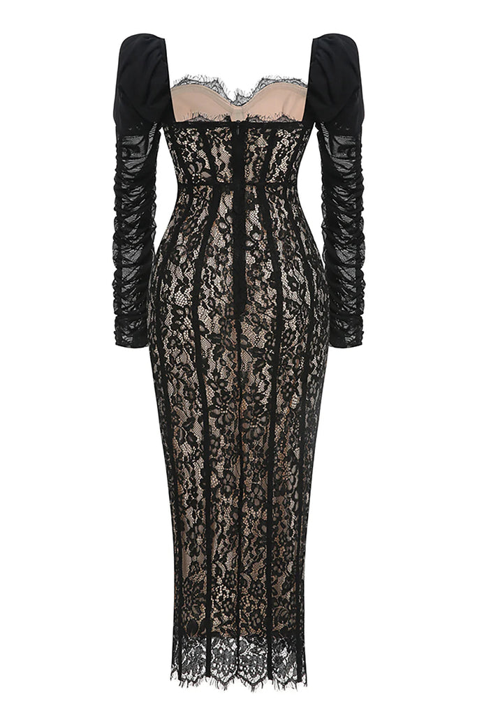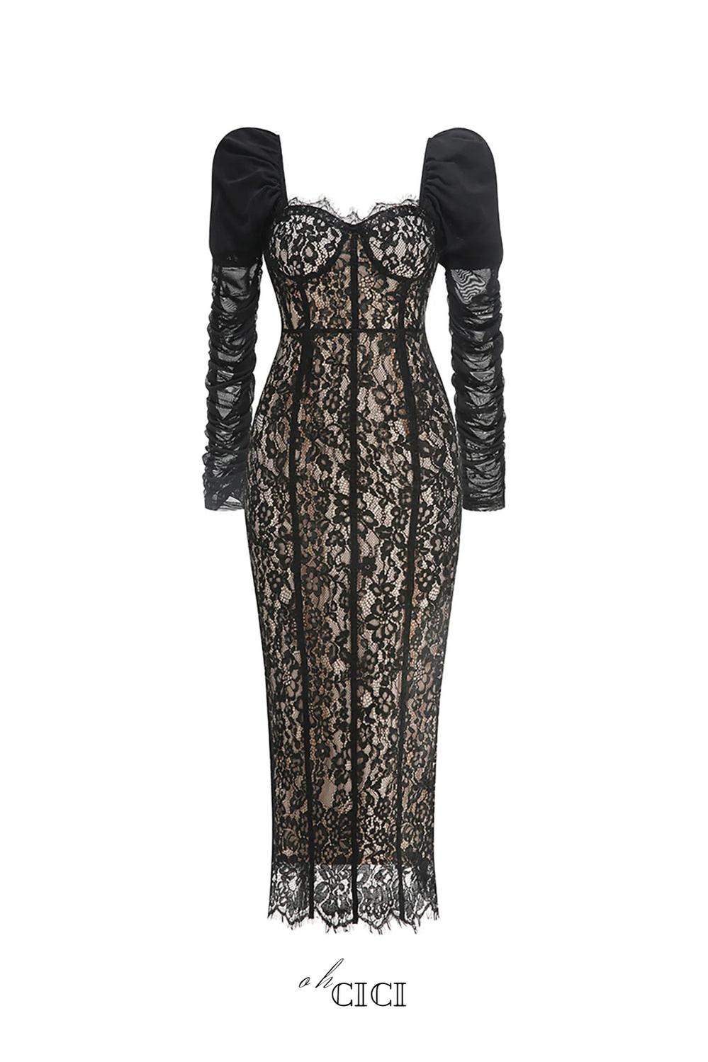 The Wendy square neck lace maxi dress in black combines timeless elegance with contemporary design. Crafted from delicate lace, this floor-length silhouette features a flattering square neckline that frames the shoulders beautifully. The intricate lace detailing provides sophisticated texture while maintaining a refined aesthetic. Perfect for evening events, formal occasions, or upscale gatherings, this versatile piece transitions seamlessly from day to night. The classic black hue ensures effortless styling with your existing wardrobe. An investment piece that delivers both luxury and wearability.