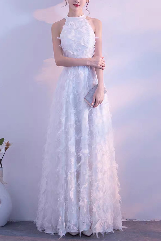 Halter Feather Tassel Maxi Dress