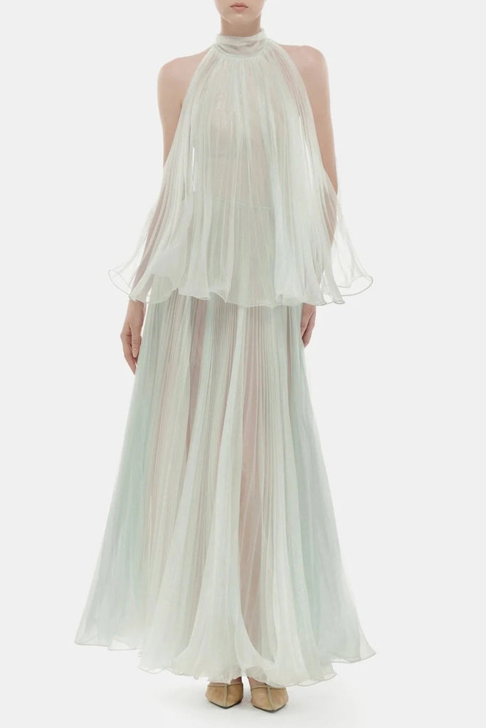 belinda Mint Pleated tulle sleeveless maxi Dress