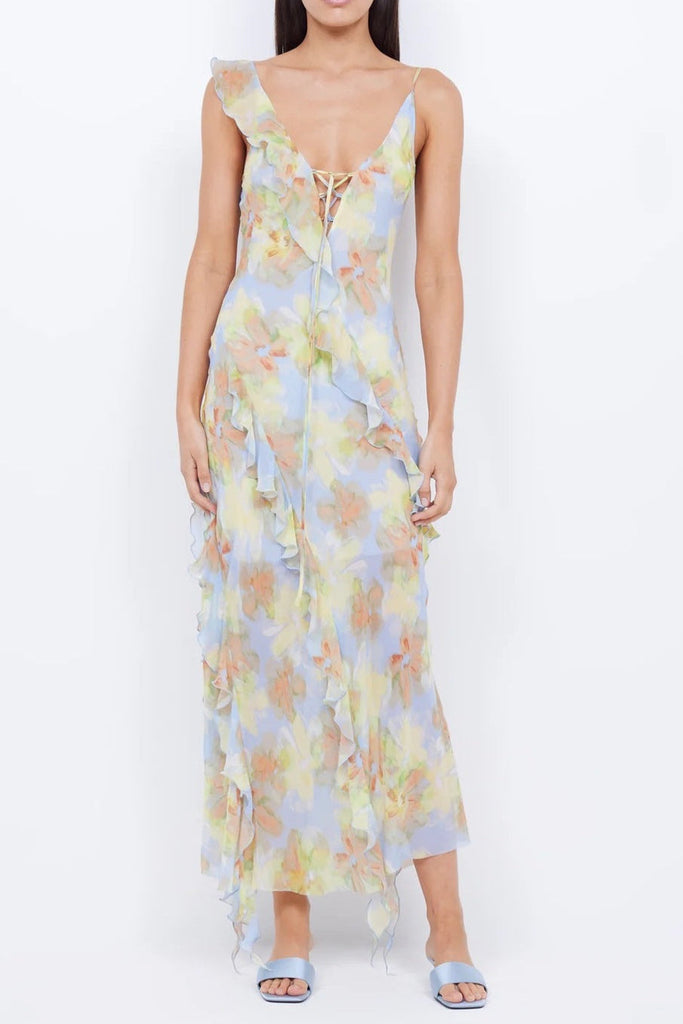 cecilia Chiffon ruffles maxi dress in blue