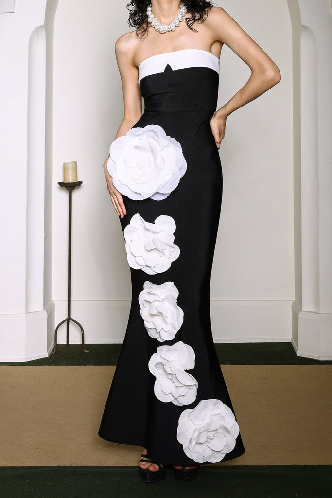 Makala 3d Flower Fishtail Maxi Bandage Dress in black