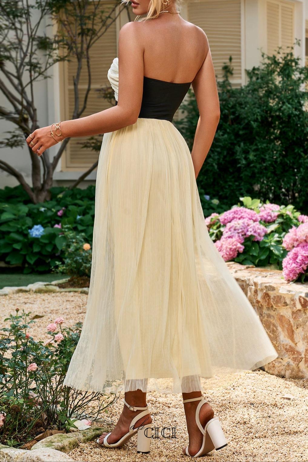 Contrast Ruched Bust Mesh Midi Tube Dress - feminine pleated mesh occasion dress - summer garden party midi dress – OH CICI
