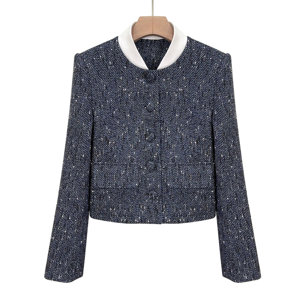 This blue boucle jacket is expertly crafted with rich texture to elevate any outfit. Made of high-quality material, it offers both comfort and style. Its classic design and intricate details make it a timeless addition to your wardrobe. Perfect for any occasion, this jacket is a must-have statement piece.
