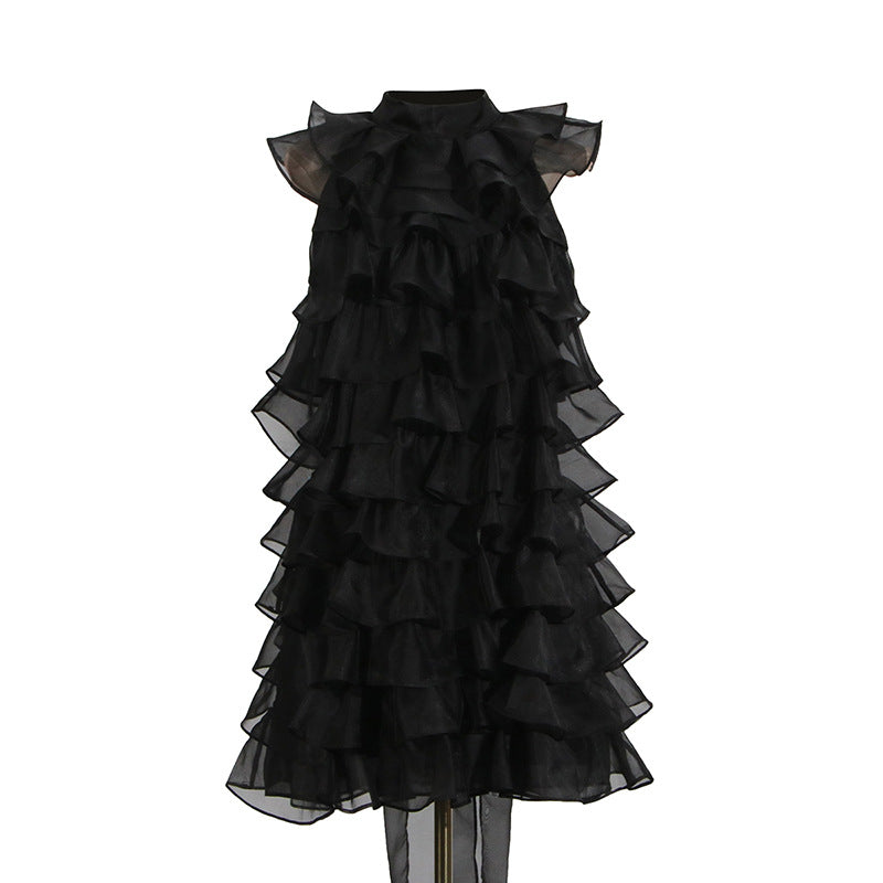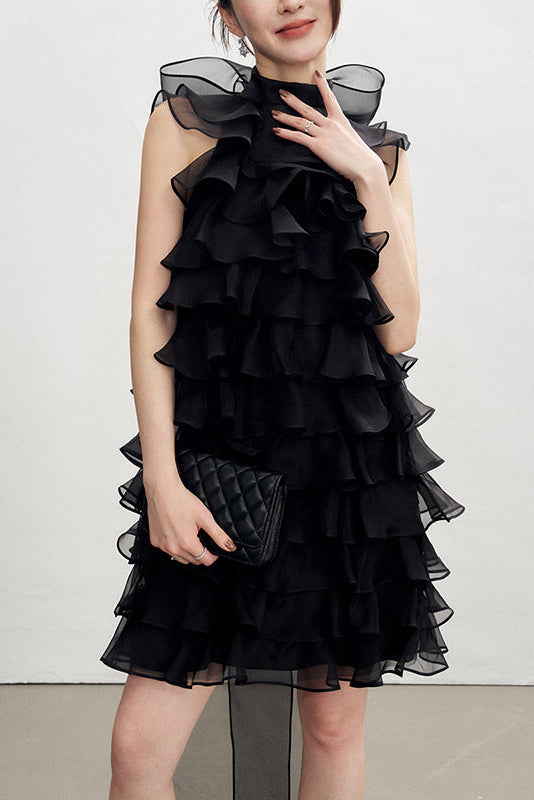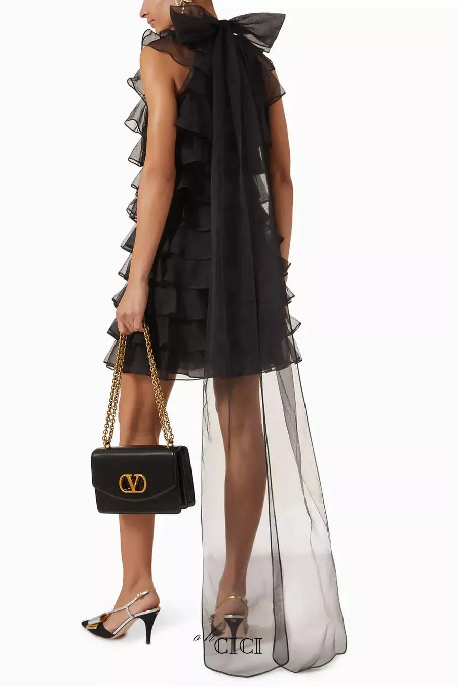 poppy Ruffle Silk Organza sleeveless Mini Dress in black – OH CICI