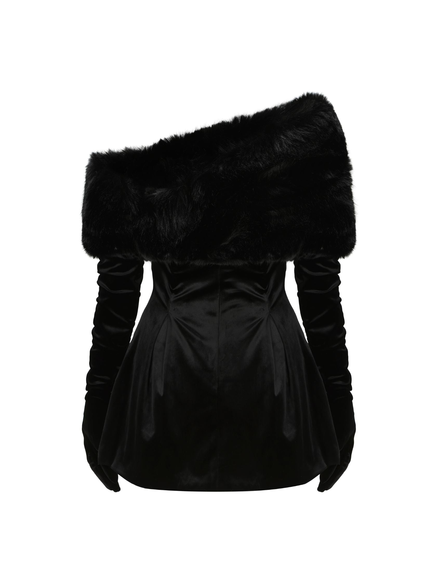 The Daphne long sleeve fur velvet mini dress in black combines luxurious textures with contemporary silhouette. Crafted from sumptuous velvet fabric, this piece features plush fur detailing on the sleeves for added dimension and sophistication. The mini length creates a modern, flattering profile, while long sleeves provide elegant coverage. Perfect for evening events, upscale gatherings, or statement-making occasions, this dress transitions seamlessly from cocktail parties to special celebrations. The rich black hue ensures versatility with your existing wardrobe while the premium materials elevate any styling choice.