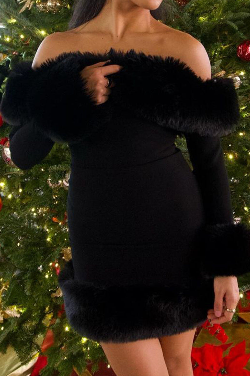 Elevate your evening wardrobe with the Rita, a sophisticated black mini dress that masterfully combines contemporary design with refined elegance. The off-shoulder silhouette creates a flattering, modern aesthetic while long sleeves provide understated coverage. Luxurious fuzzy details add textural depth and visual interest, transforming this piece into a statement-worthy option for cocktail events, date nights, or upscale casual occasions. The mini length ensures a youthful, confident look that pairs effortlessly with heels or sleek boots. Versatile enough to transition from season to season, this dress delivers polished style with an edge.