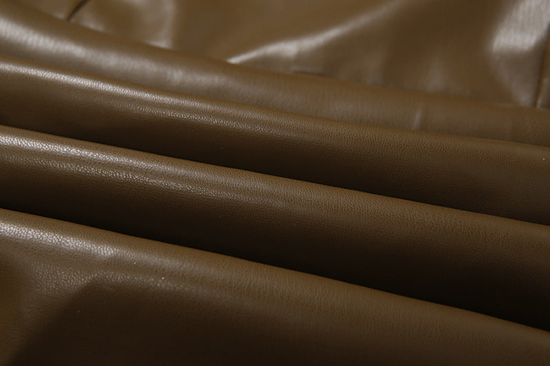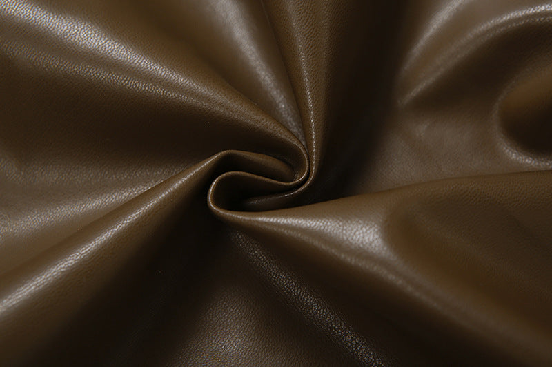 Faux-Fur & Leather Dress: Luxurious collar and cuffs meet a sleek leather silhouette for dramatic elegance. Perfect for cocktail events—blending ethical materials with high-impact style and timeless confidence.