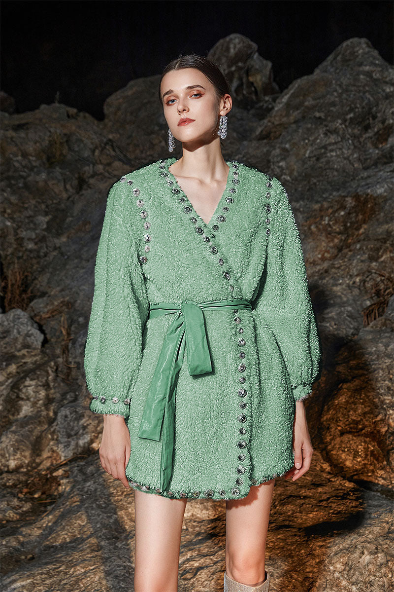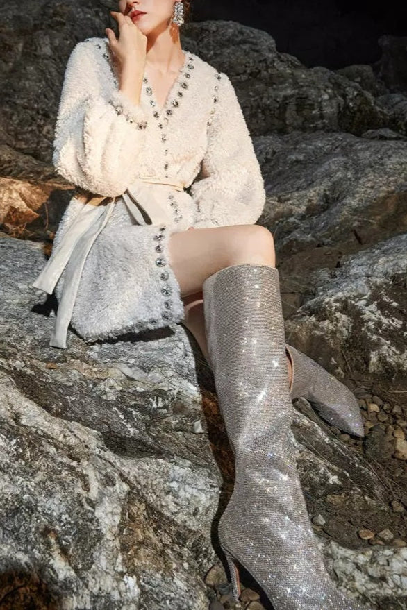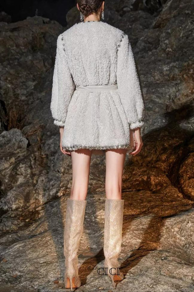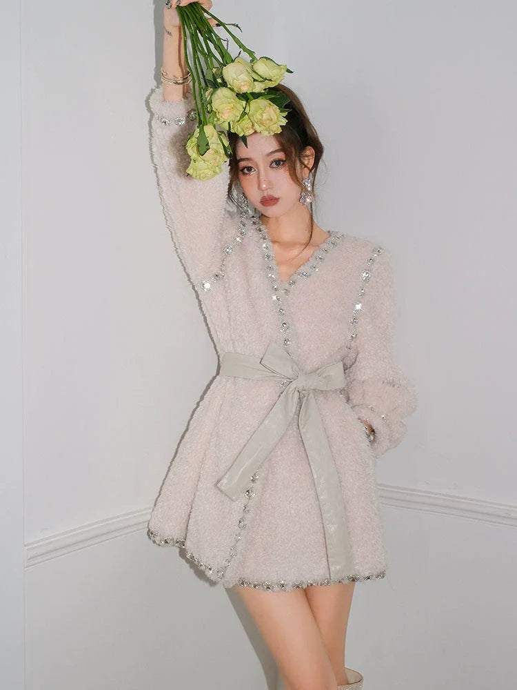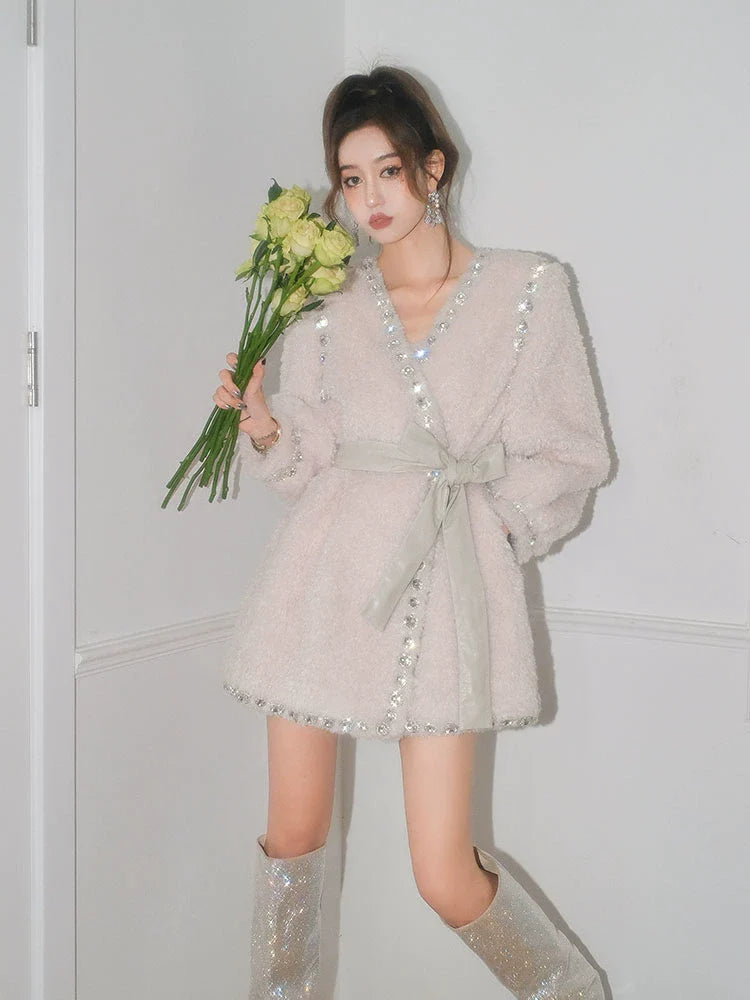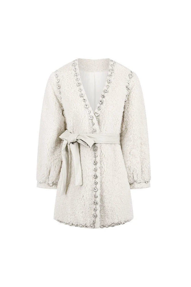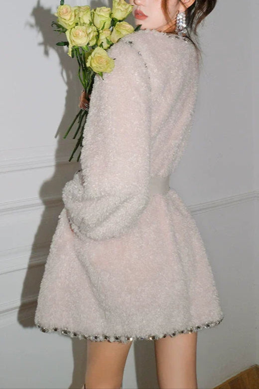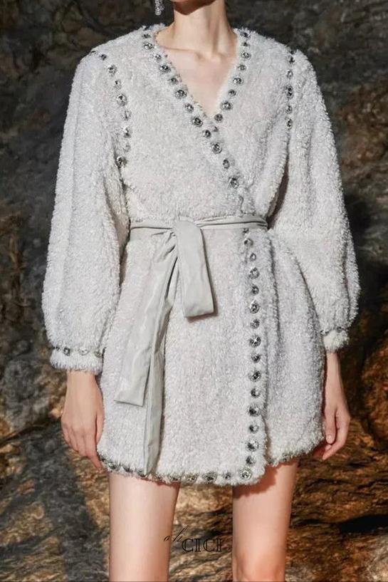 Elevate your wardrobe with the Beige V-Neck Long Sleeve Diamond Stud Coat, designed for a refined yet modern look. Crafted with attention to detail, its V-neckline enhances layering versatility, while the diamond stud embellishments add a subtle touch of sophistication. The long sleeves provide warmth and coverage, making it an ideal outer layer for transitional seasons. This coat seamlessly combines elegance and practicality, perfect for professional settings or polished casual wear.