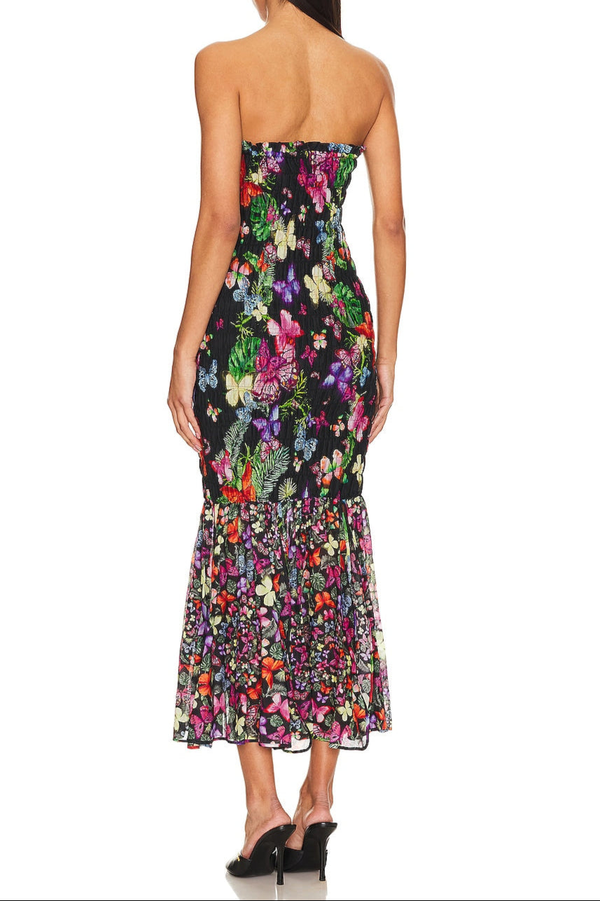 This butterfly print fishtail wrap maxi dress combines elegant design with a flattering silhouette. The wrap style allows for adjustable comfort and a personalized fit, while the fishtail hem adds graceful movement and a touch of sophistication. Crafted with attention to detail, this dress is perfect for occasions where you want to make a refined yet effortless statement. The delicate butterfly print enhances its feminine charm, making it a versatile addition to your wardrobe.