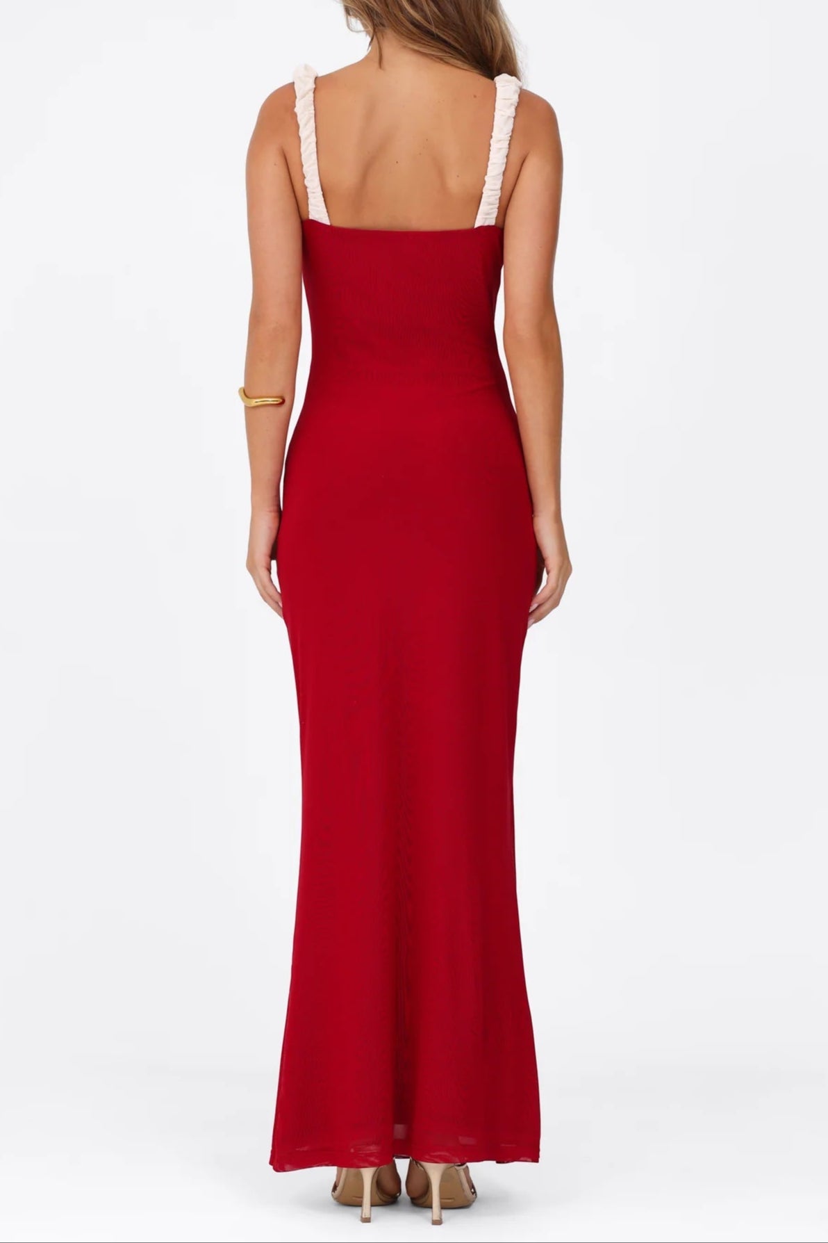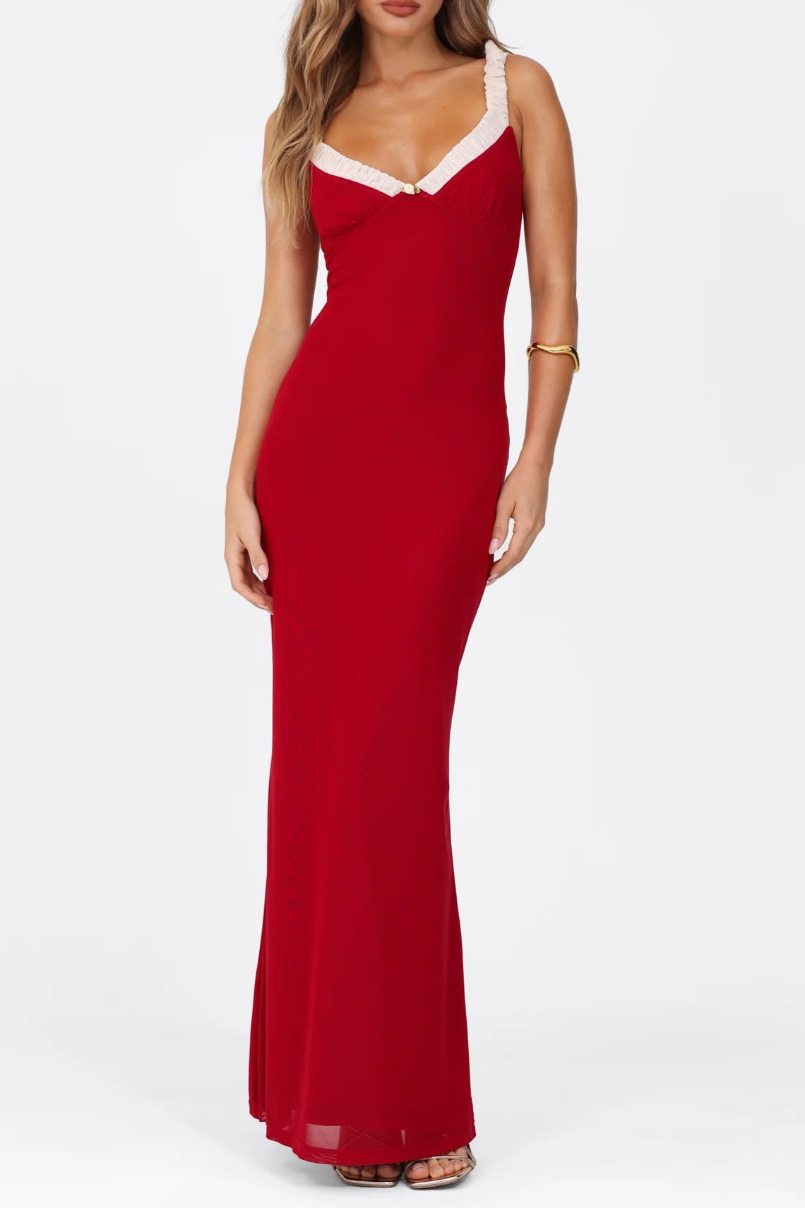 This elegant red bustier maxi dress features a flattering V-neckline that enhances the décolletage with a sophisticated silhouette. Designed to provide a structured yet comfortable fit, it combines timeless style with modern appeal, making it ideal for formal events or evening occasions. The maxi length adds graceful movement, ensuring you stand out with confidence and poise.
