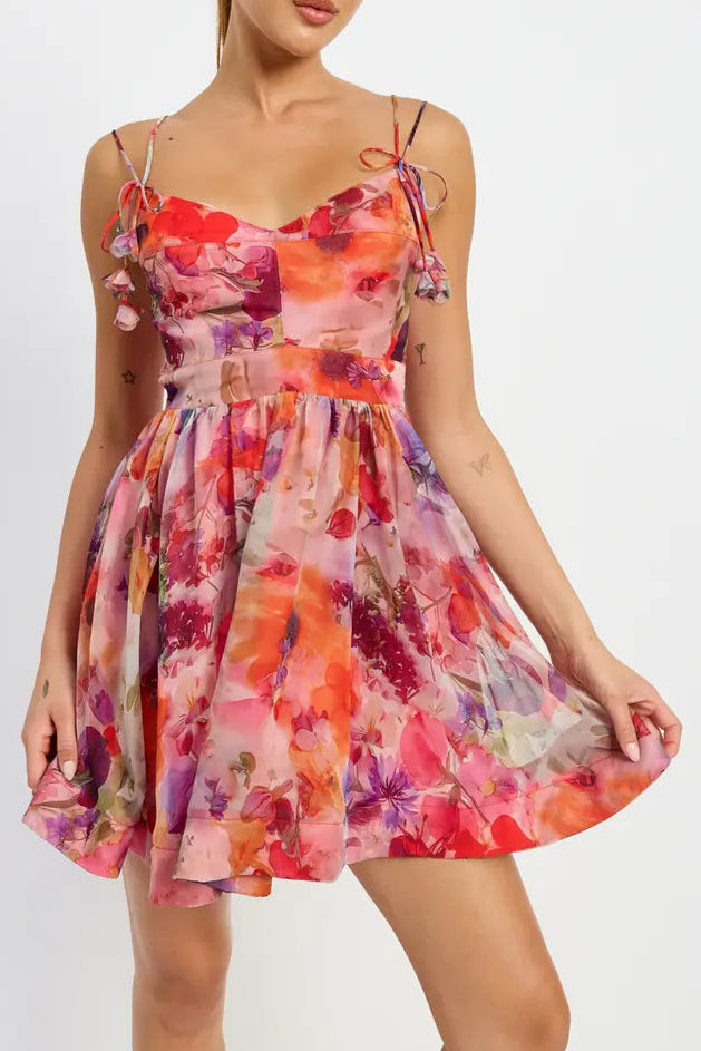 This Red Multi Floral Tie Strap Mini Dress combines vibrant floral patterns with a flattering mini silhouette, perfect for warm-weather occasions. The adjustable tie straps ensure a customized fit, enhancing comfort and style. Crafted to highlight your figure, this dress offers a versatile option for both casual outings and dressier events. Its lively red base and multi-colored floral design add a fresh, elegant touch to your wardrobe.