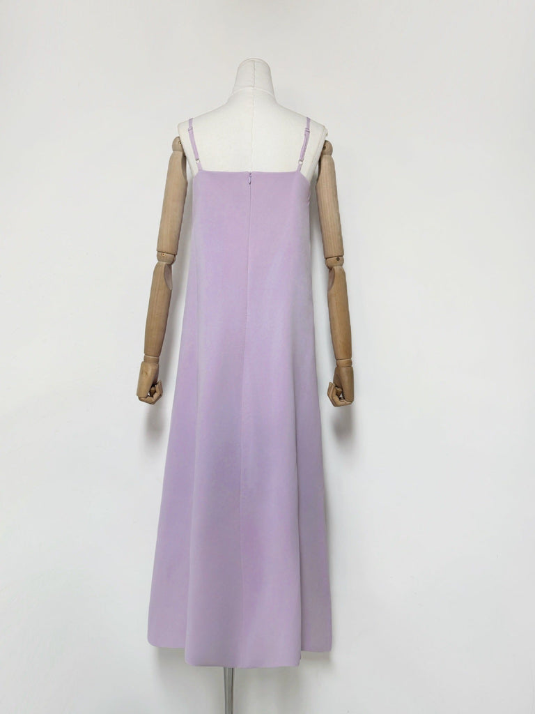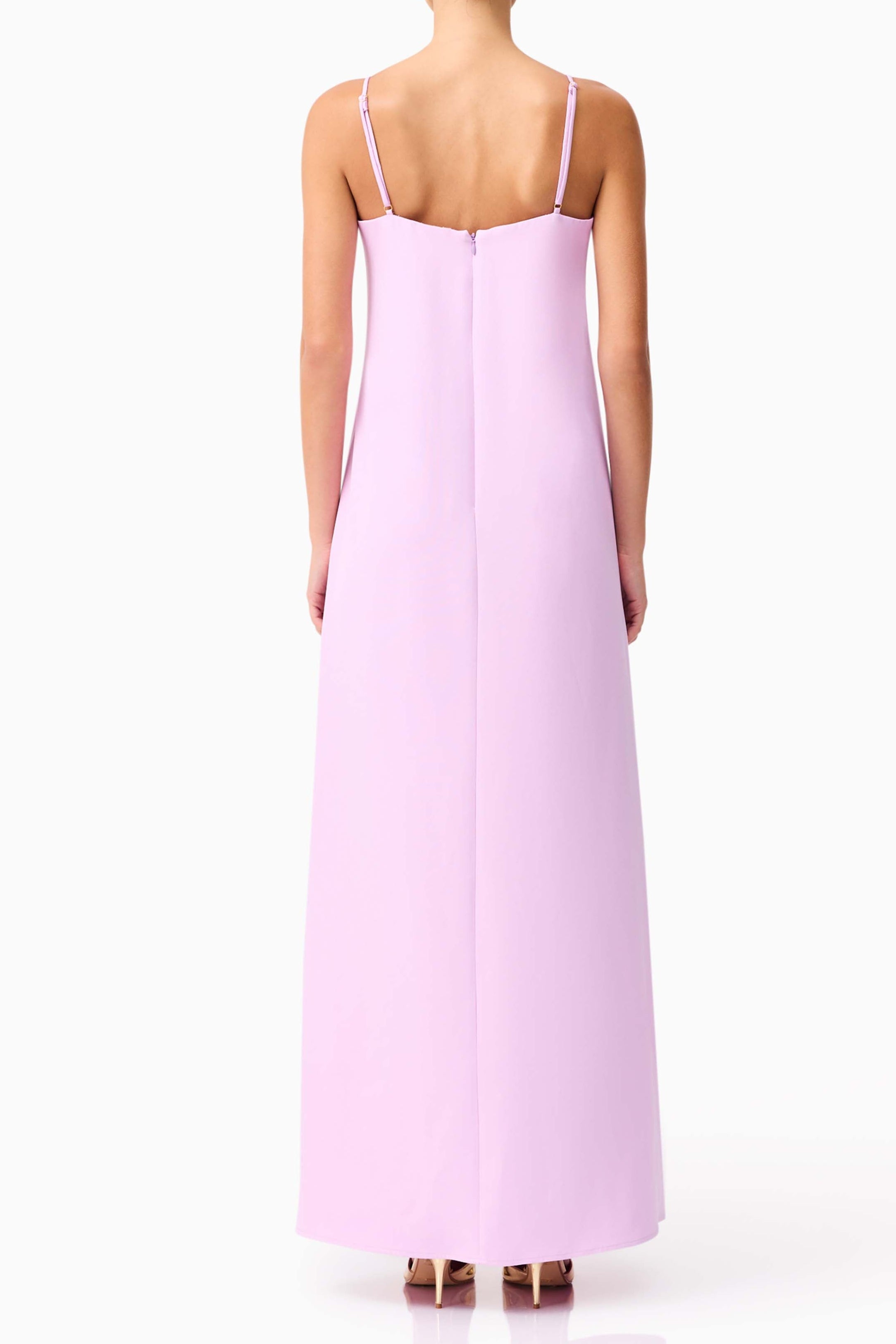 Made from a breathable suiting fabrication, the dress offers light structure without compromising on movement—perfect for long celebrations or evening events. Its maxi length makes it a go-to for weddings, formal dinners, or special celebrations where grace and glamour are key.