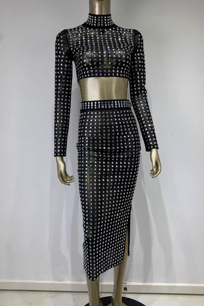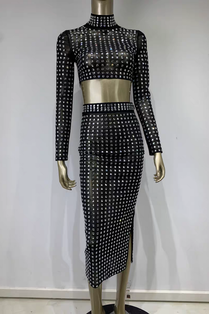 METALLIC SEQUIN SKIRT IN BLACK-OH CICI NEW STYLE DRESS FREE SHIPPING DRESS NEW LOOK DRESSES SALE
