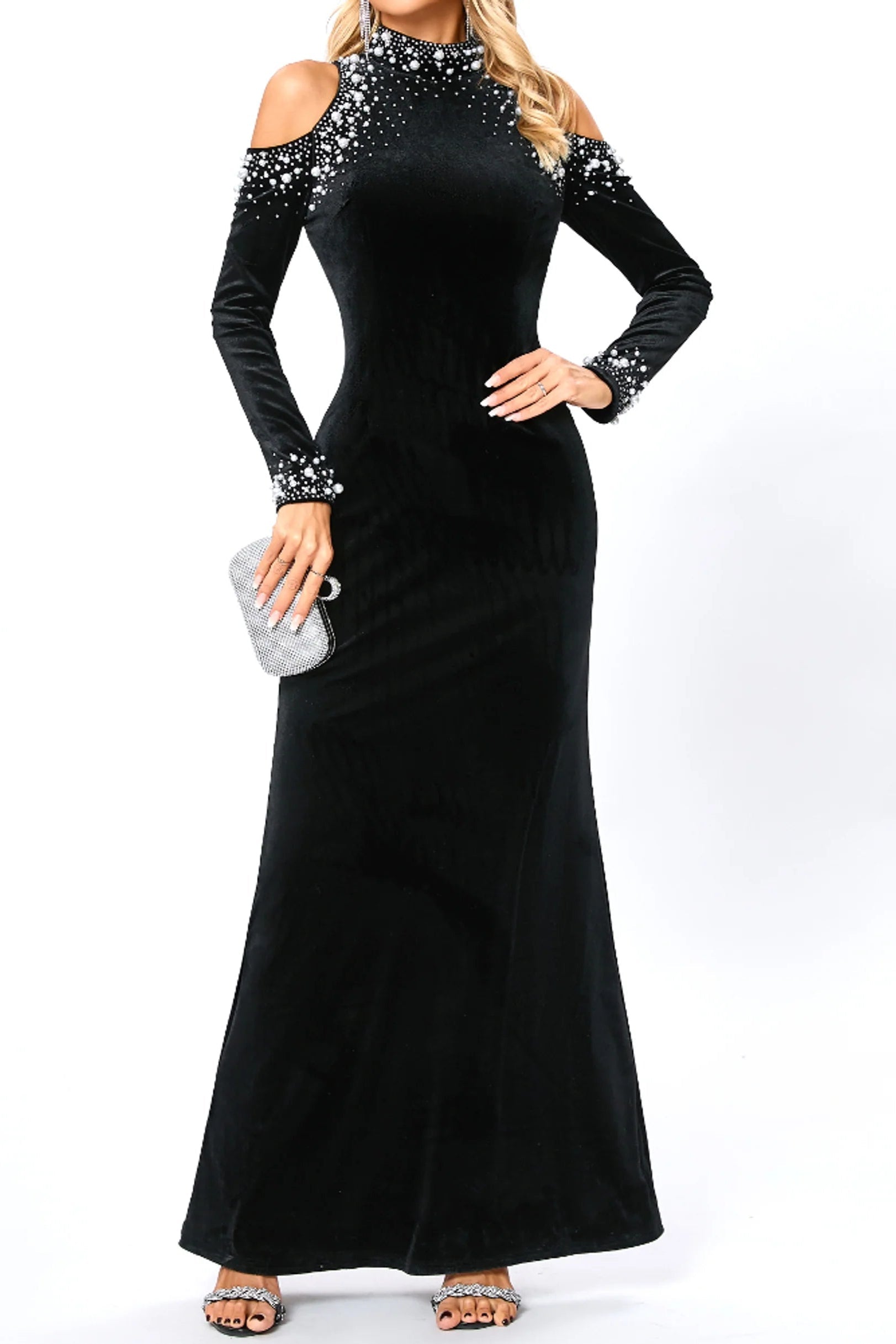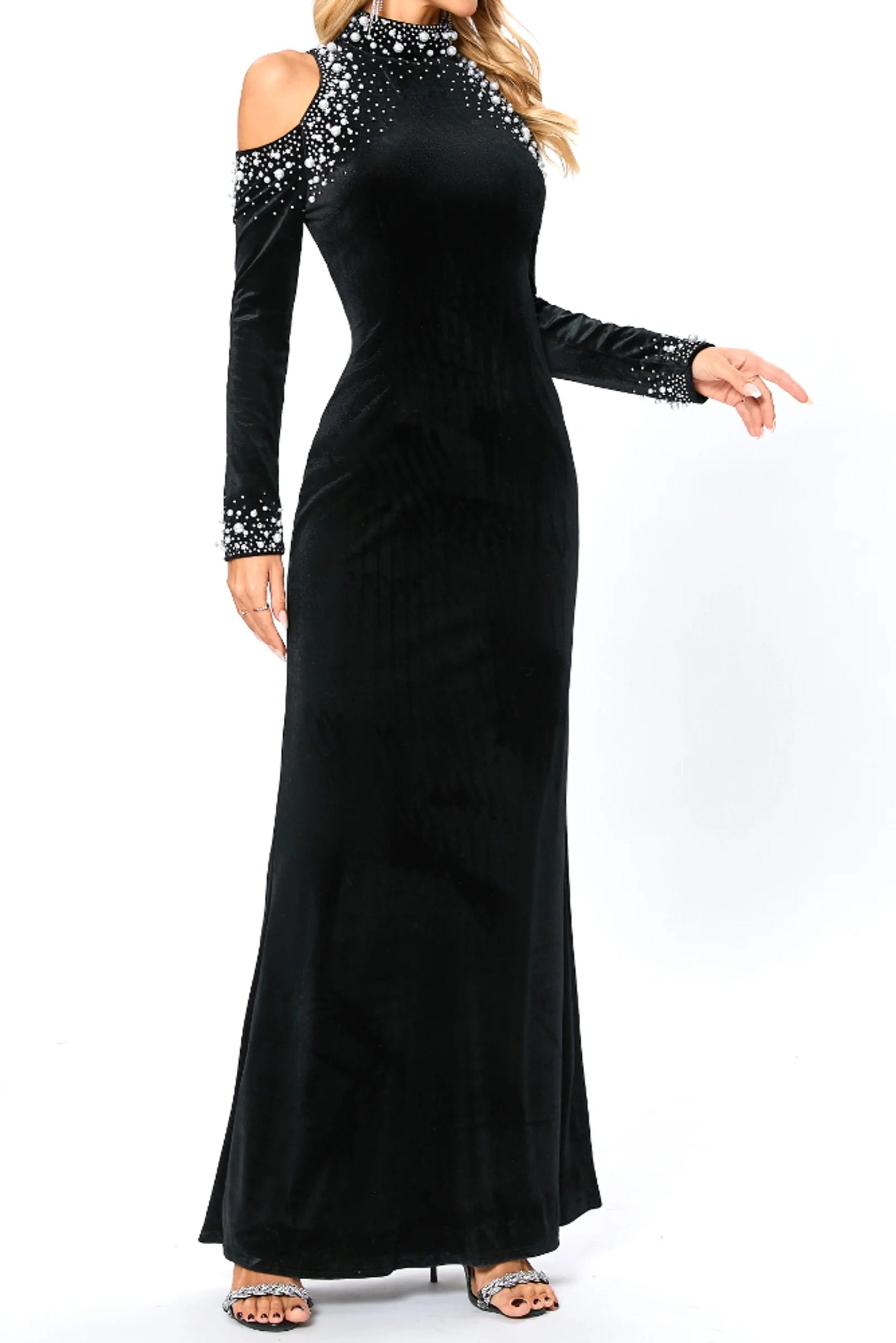 This stunning dress features long sleeves and a maxi length for a sleek and sophisticated look. Perfect for any occasion, it offers comfort and glamour in equal measure. Add this versatile piece to your wardrobe and make a statement wherever you go.