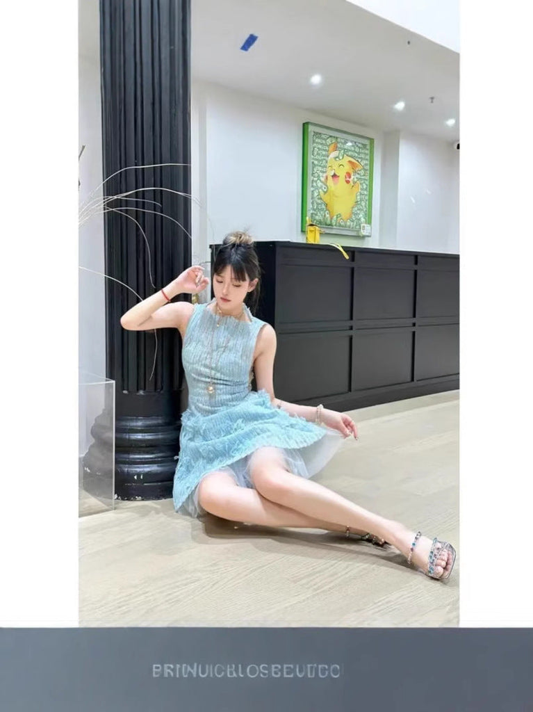 With a soft A-line skirt and a tulle underlayer for extra volume, the dress flows gracefully, offering a flattering, light silhouette. The mini length gives it a youthful, stylish touch, making it ideal for special occasions. This dress combines delicate lace, intricate floral accents, and a graceful silhouette to create an effortlessly chic look that feels fresh and romantic—perfect for those who want a sophisticated yet playful style.